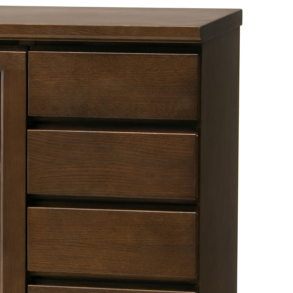5杯の引出しは、リビング周りの小物の収納に便利です。上下どちら側からも掴むことができる引き手で、引き出しやすい仕様です。