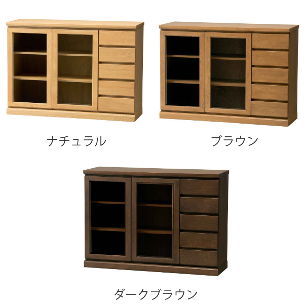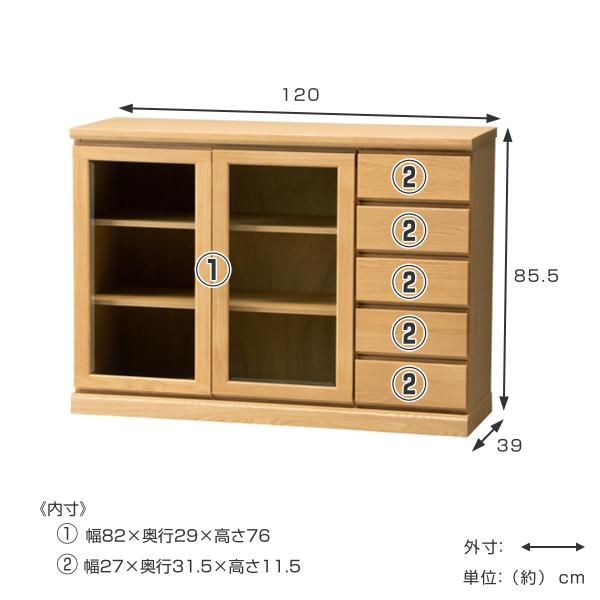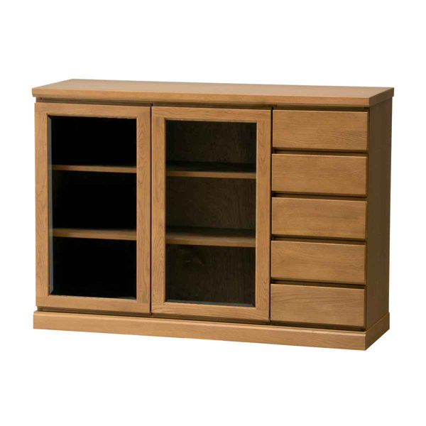 サイドボード 両開き ガラス扉 引出し5段 天然木 FIGARO 幅120cm ( 開梱設置 収納棚 窓下 キッチン キッチンカウンター 木製 日本製 完成品 収納 キッチン収納 引出し収納 リビング収納 オーク 国産 おしゃれ )