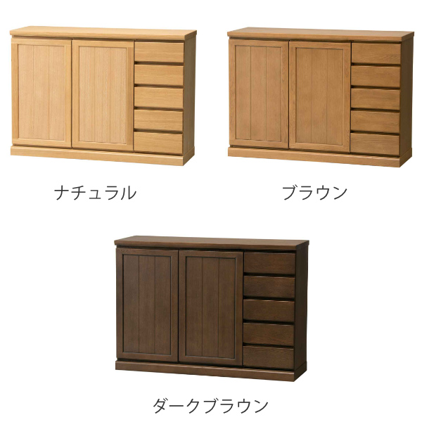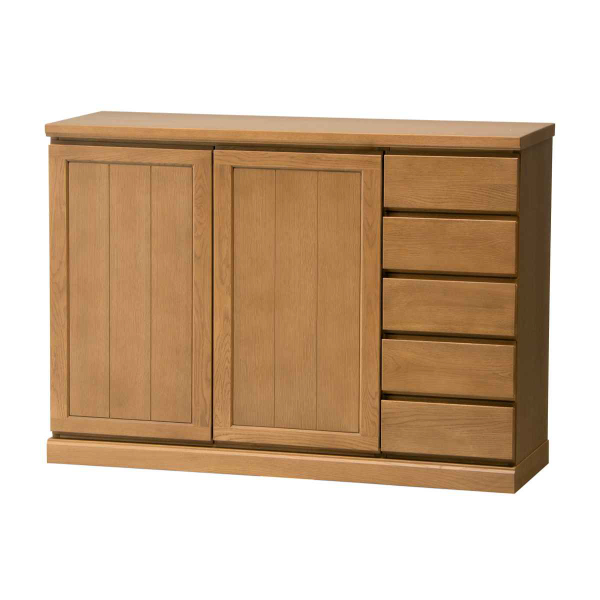 サイドボード 両開き 板扉 引出し5段 天然木 FIGARO 幅120cm ( 開梱設置 収納棚 窓下 キッチン キッチンカウンター 木製 日本製 完成品 収納 キッチン収納 引出し収納 リビング収納 オーク 国産 おしゃれ )