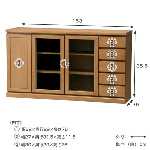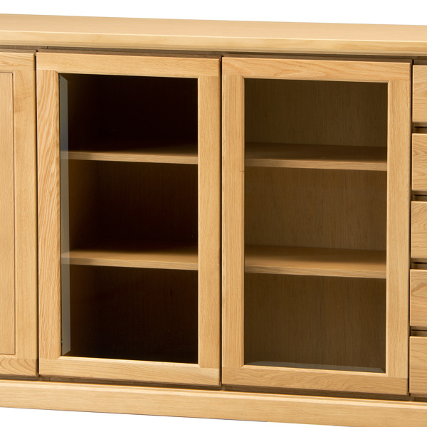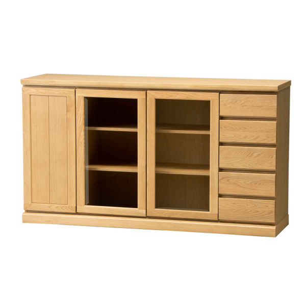 サイドボード 3枚扉 ガラス扉 引出し5段 天然木 FIGARO 幅153cm ( 開梱設置 収納棚 窓下 キッチン キッチンカウンター 木製 日本製 完成品 収納 キッチン収納 引出し収納 リビング収納 オーク 国産 おしゃれ )