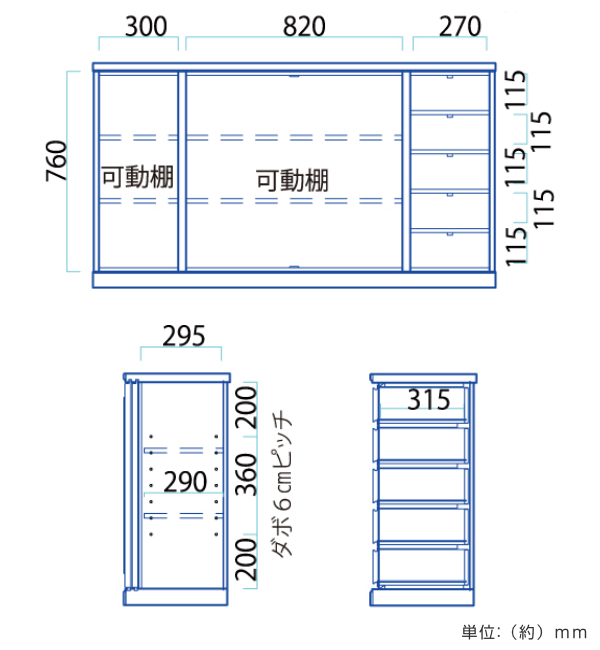 ●5杯の引出しは、リビング周りの小物の収納に便利です。