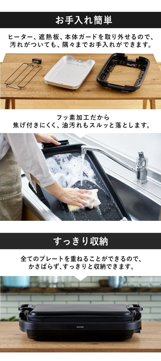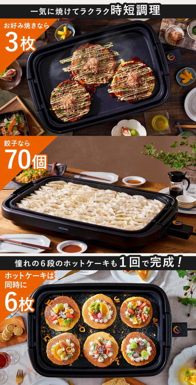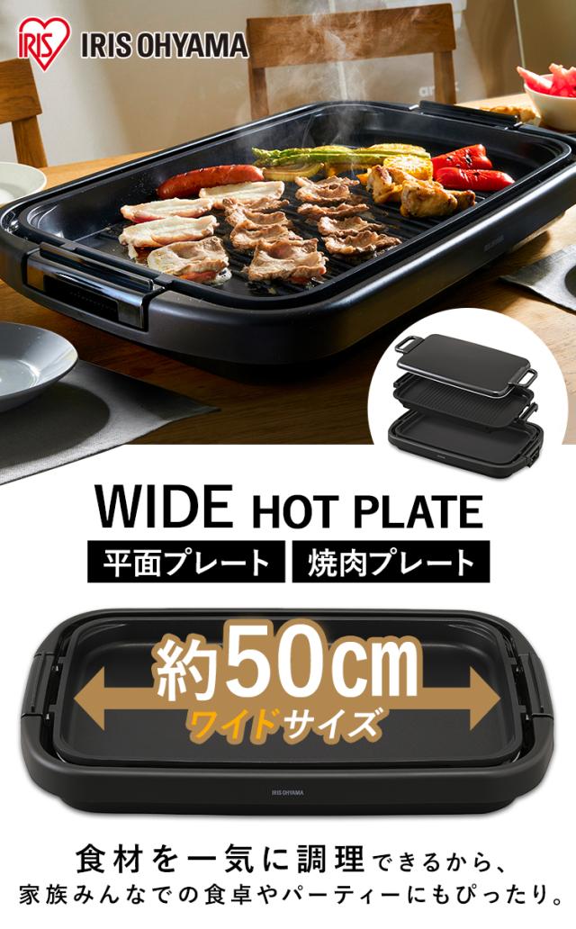 ★クーポンあり★ ホットプレート 大型 ワイド 幅約50cm アイリスオーヤマ 3〜4人分 一気に調理 大きい 平面プレート 焼肉プレート 大人数 ホームパーティー お手入れ簡単 フッ素加工 ふた付き 重ねて収納 キッチン家電 ワイドホットプレート 2枚 SWHP-012-B *