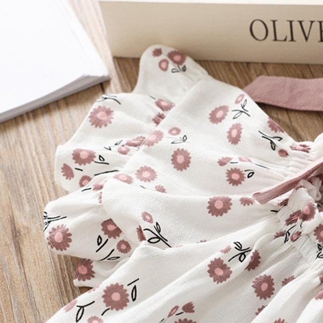 セットアップ 上下セット 子供服 キッズ ベビー 半袖ブラウス ショートパンツ 花柄プリント 肩紐 シャーリング おしゃれ