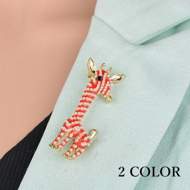 ブローチ アクセサリー レディース 女性 フェイクパール キリン キラキラ かわいい おしゃれ 大人女子 上品 綺麗 ギフト プレゼント 発表会 記念