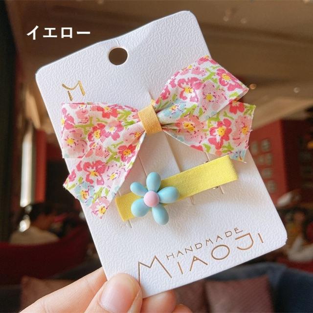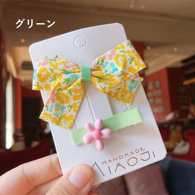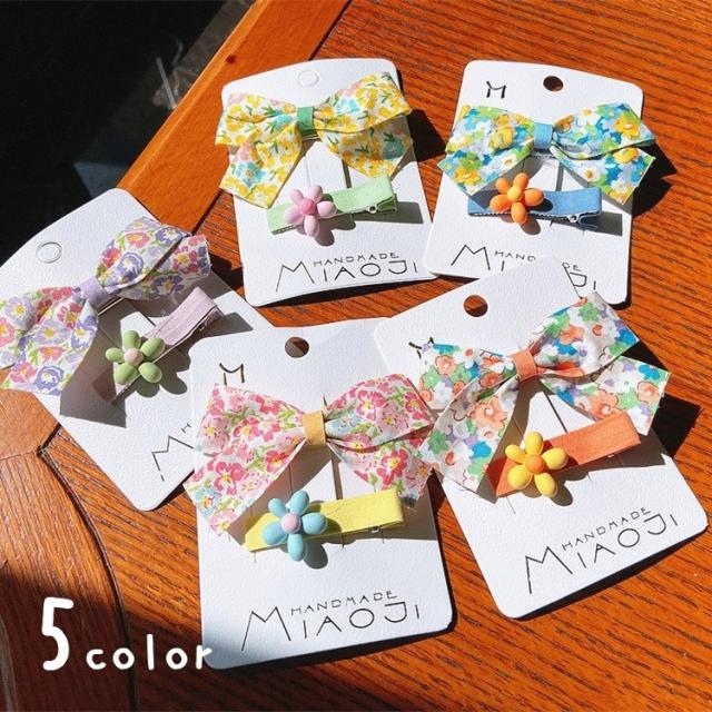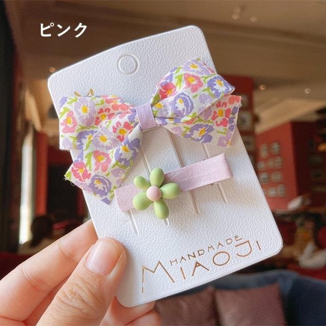 ヘアクリップ 2個セット 髪留め 髪飾り ヘアアクセサリー キッズ 子供 ファッション小物 リボン 花柄 かわいい おしゃれ