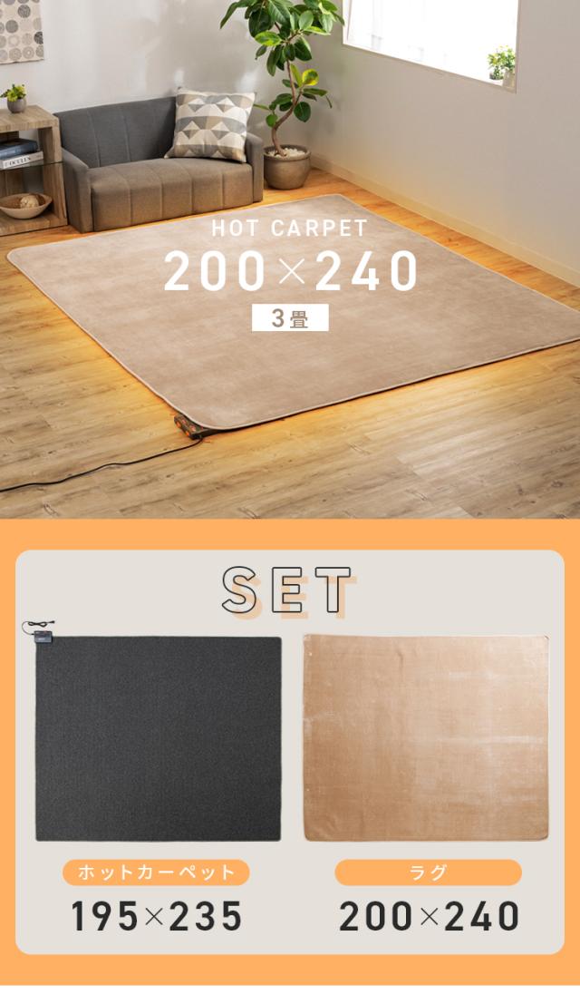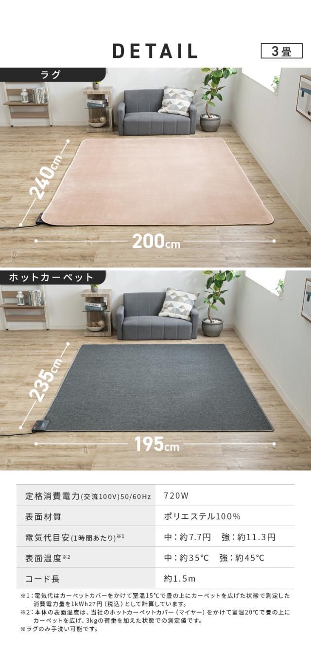ホットカーペット 3畳 本体 ラグ 2点セット 長方形 電気カーペット 3畳用 ホットマット 電気マット 速暖 暖房 面積切替 温度調節 切忘れタイマー 簡単 操作 足元暖房 床暖房 暖房器具 カーペット ラグマット テクノス TEKNOS TCW-3002MF *