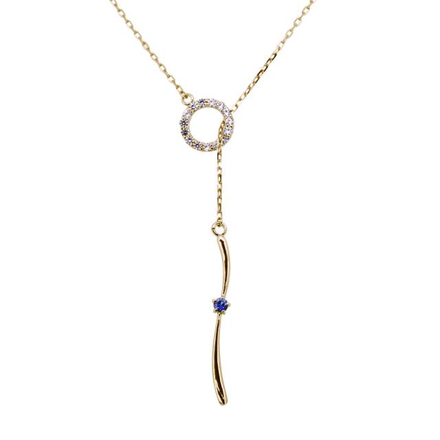 9月誕生石サファイアを使用した18金製の、Y字ロングネックレスです。