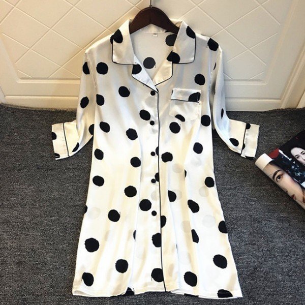 レディース マタニティ パジャマ ルームウェア インナー 春夏 セール 部屋着 ホワイト ブルー 前開き 可愛い ドット柄 水玉柄 半袖 L XL