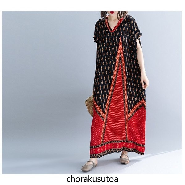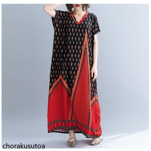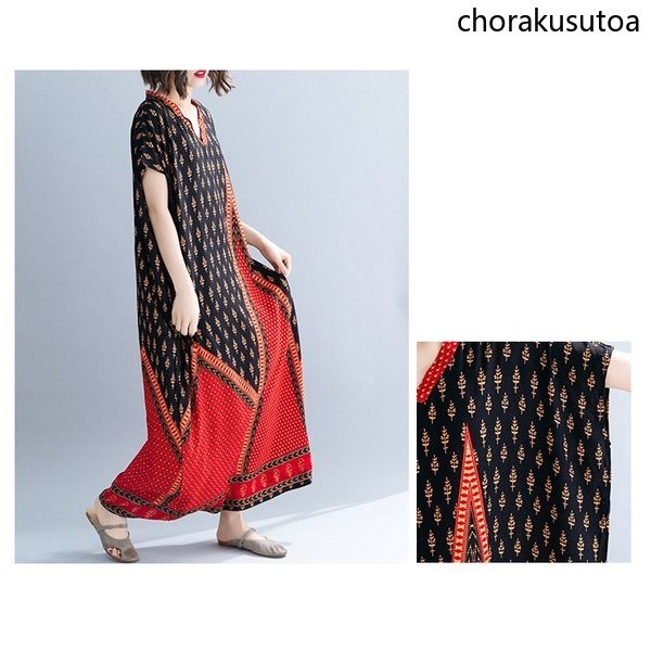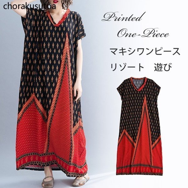 ワンピース レディース リゾートワンピース ロング マキシワンピース 大きいサイズ Vネック シフォンワンピース リゾート ハワイ 夏ワンピース 海 ボヘミアン