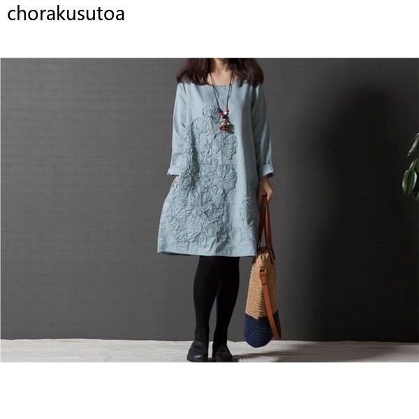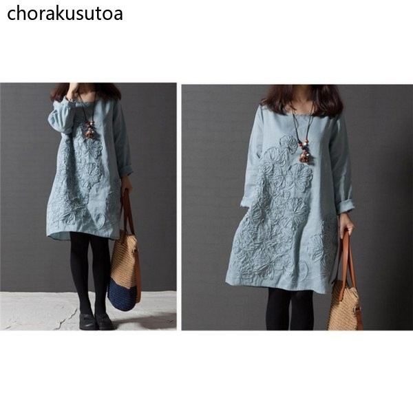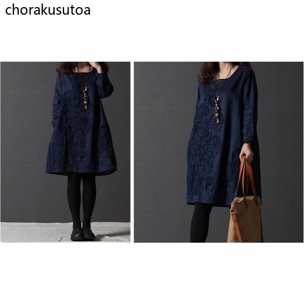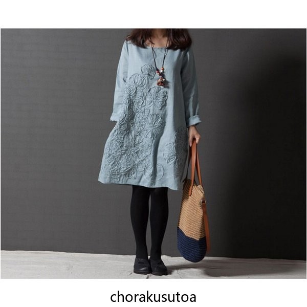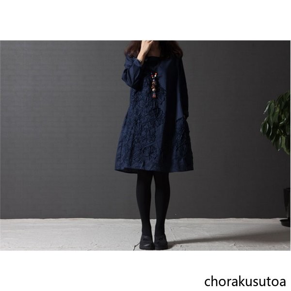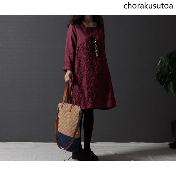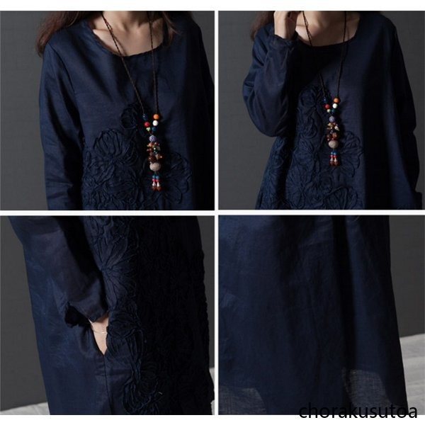 チュニック ワンピース ミニ丈 レディース チュニックワンピース チュニックワンピ 長袖 綿麻混 刺繍 大きいサイズ ゆったり 体型カバー 着痩せ