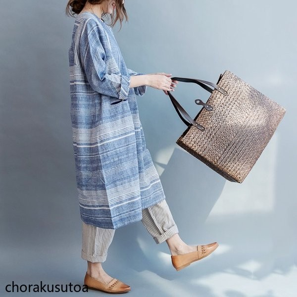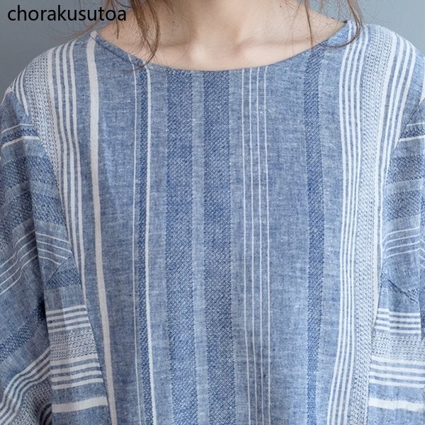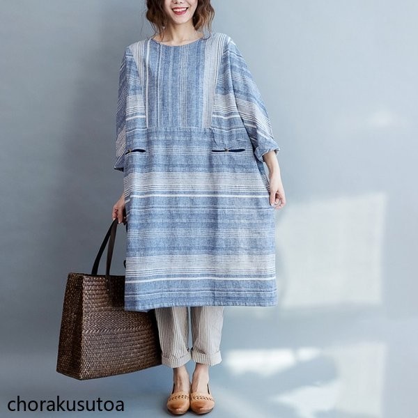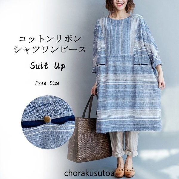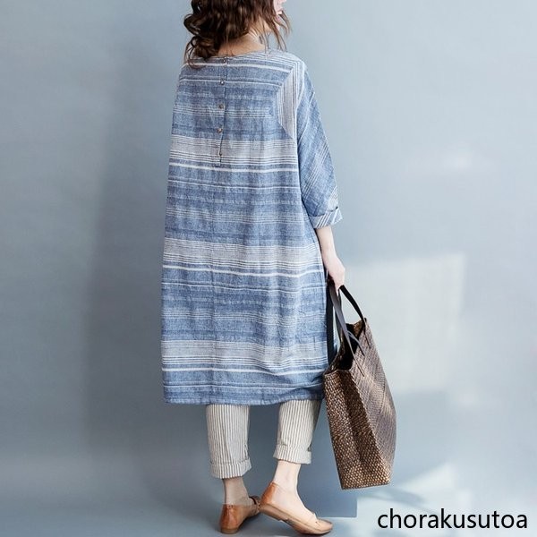 ワンピース レデイース ロング丈 七分袖 シャツワンピース ロングシャツ チュニック 綿麻混 ゆったり 体型カバー お洒落 春 春物 30代 40代 50代