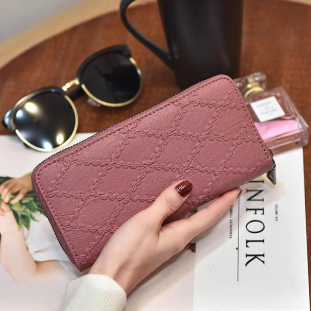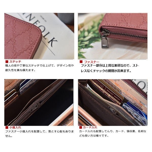 長財布 レディース 財布 サイフ ラウンドファスナー 札入れ ロングウォレット チェック型押し 小銭入れ 大容量財布 おしゃれ 贈り物
