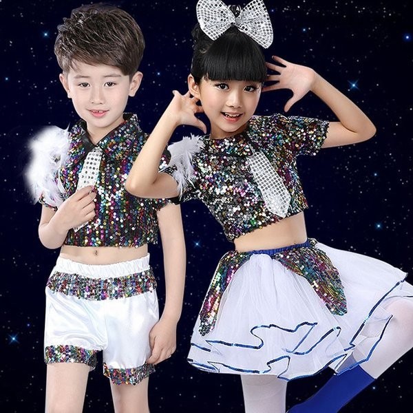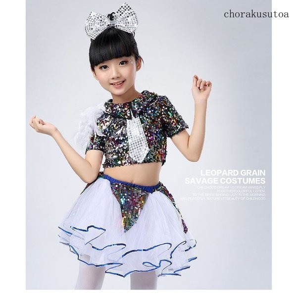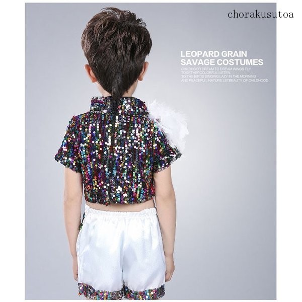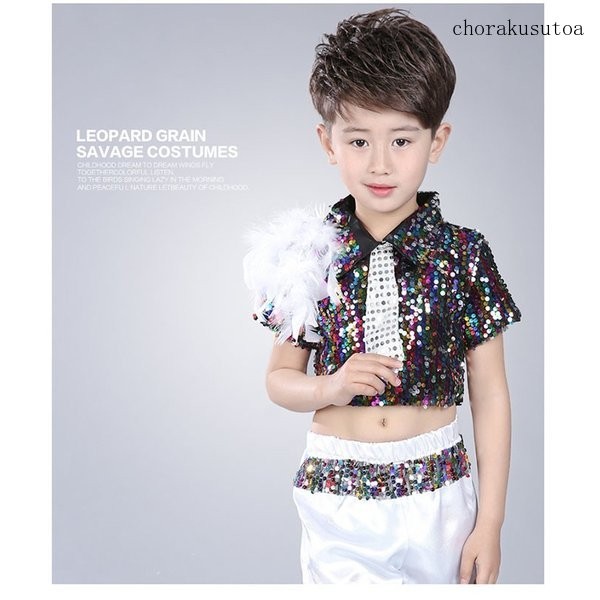 キッズダンス衣装 セットアップ スパンコール 男の子 女の子 ネクタイ付き ダンスウェア キラキラ ジャズダンス ヒップホップ 演出服