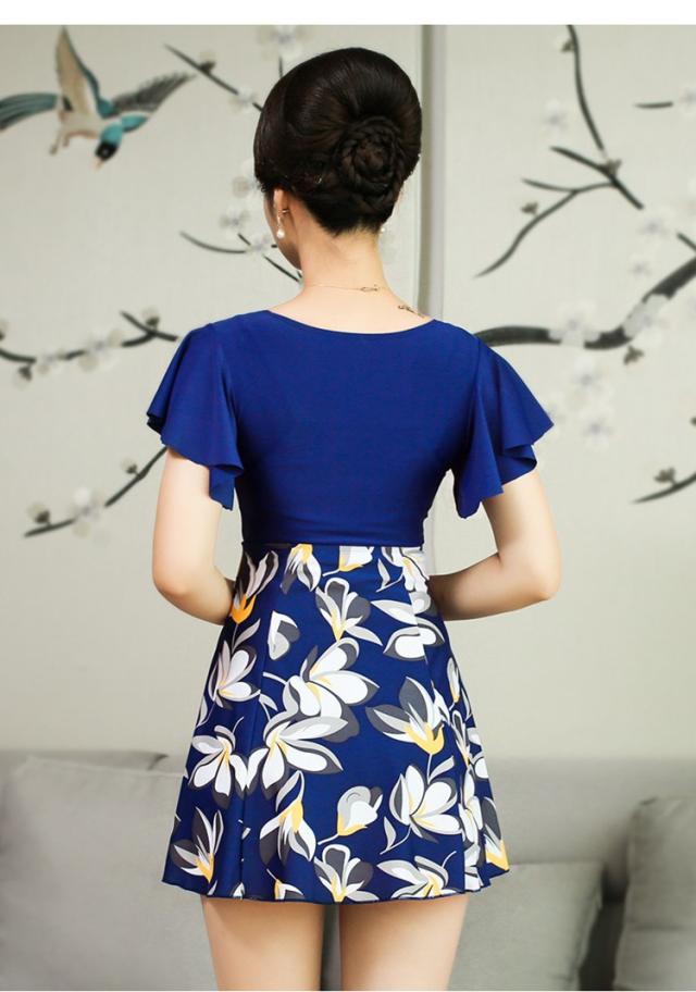 大きいサイズ 水着 レディース 夏らしいマリン風花柄 スイムウェア ママ水着 大きいサイズ 水着ワンピ みずぎ ミニワンピ ミニ丈 夏 パット入りセット