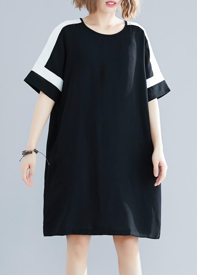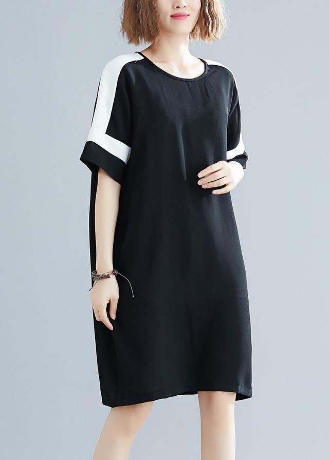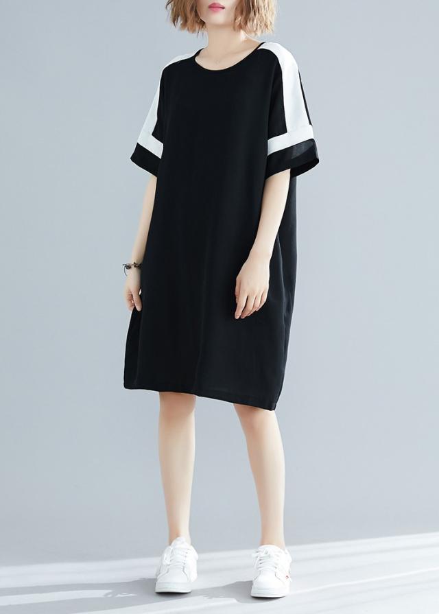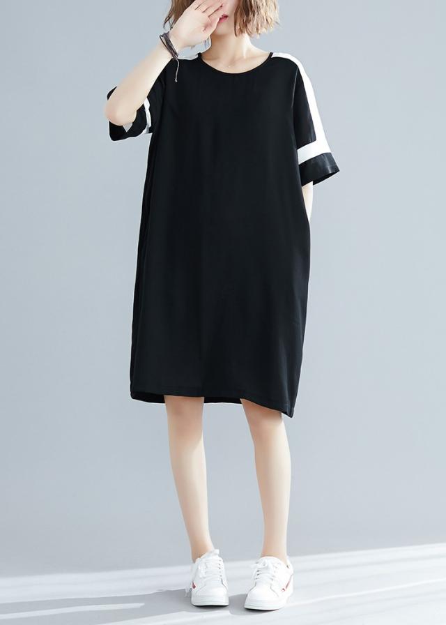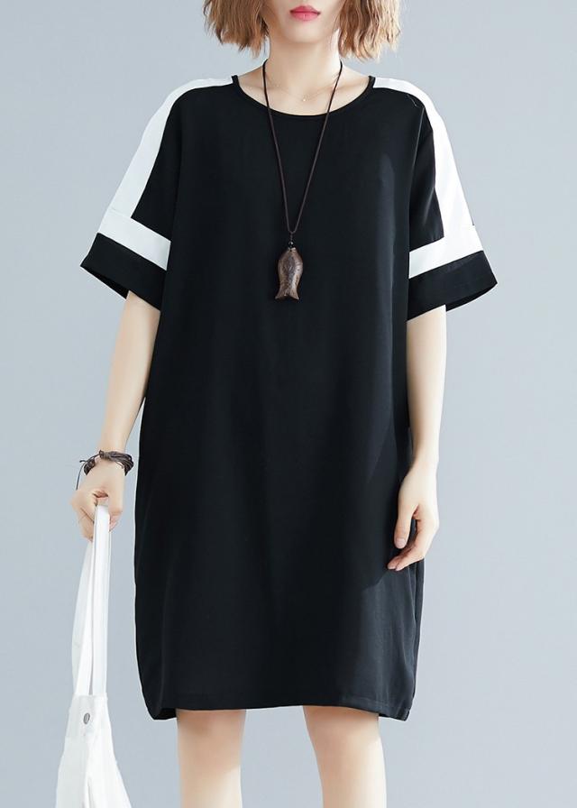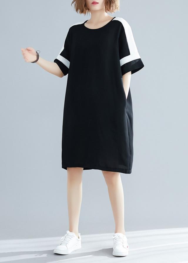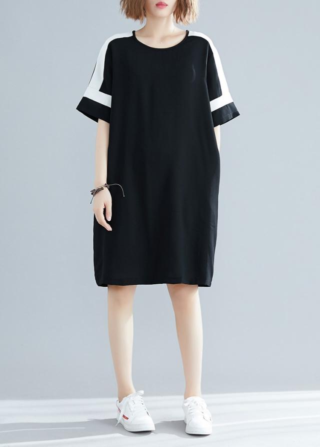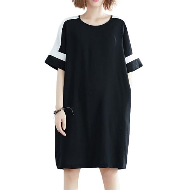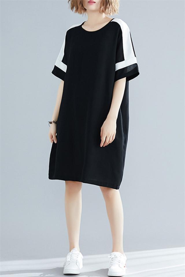 ワンピース レディース 夏 オシャレ 膝丈ワンピース 切り替え 黒白ワンピ 体型カバー ロング丈Tシャツ 40代 カジュアル 大きいサイズ