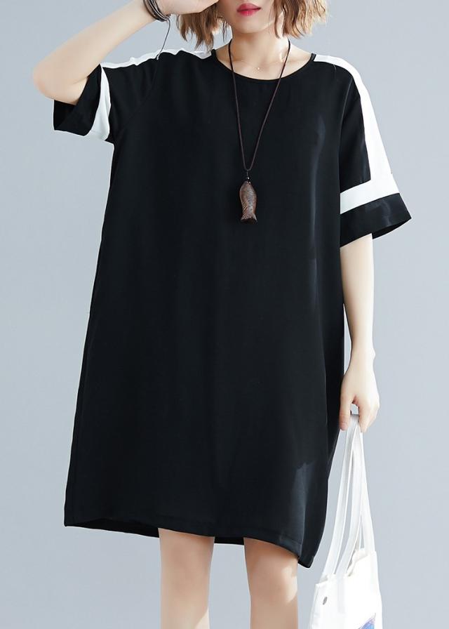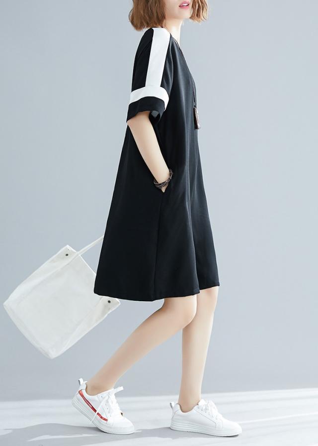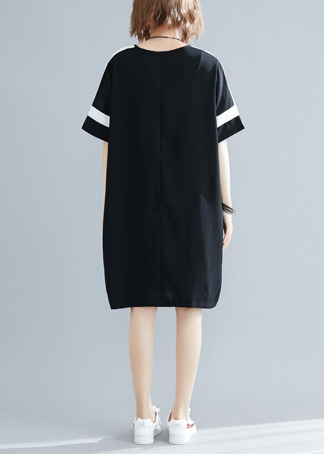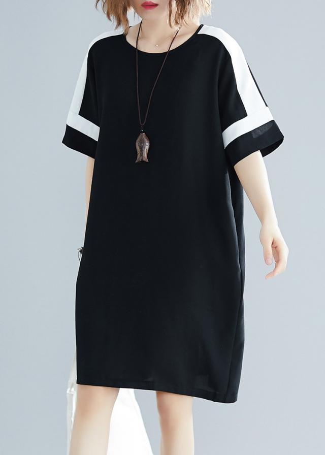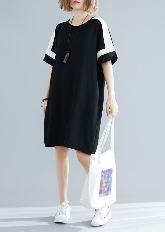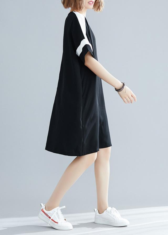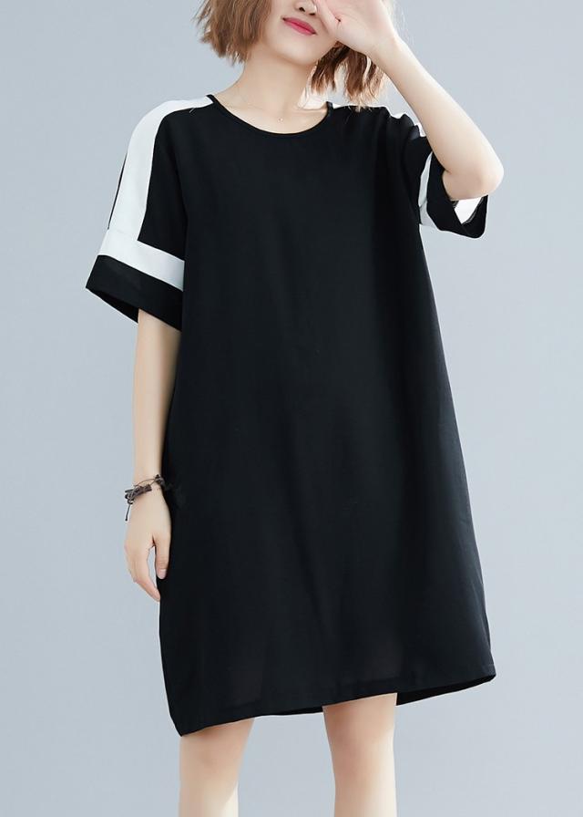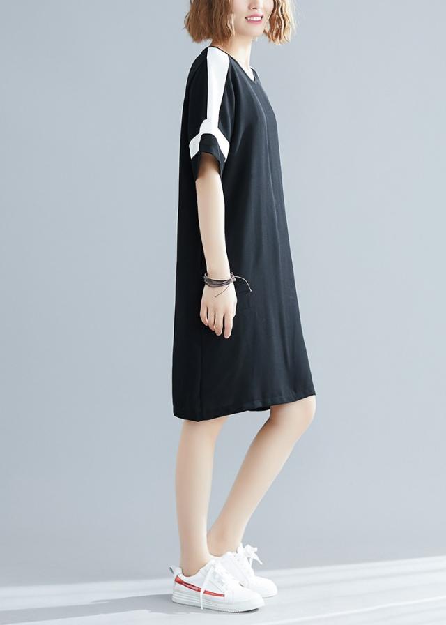 ワンピース レディース 夏 オシャレ 膝丈ワンピース 切り替え 黒白ワンピ 体型カバー ロング丈Tシャツ 40代 カジュアル 大きいサイズ