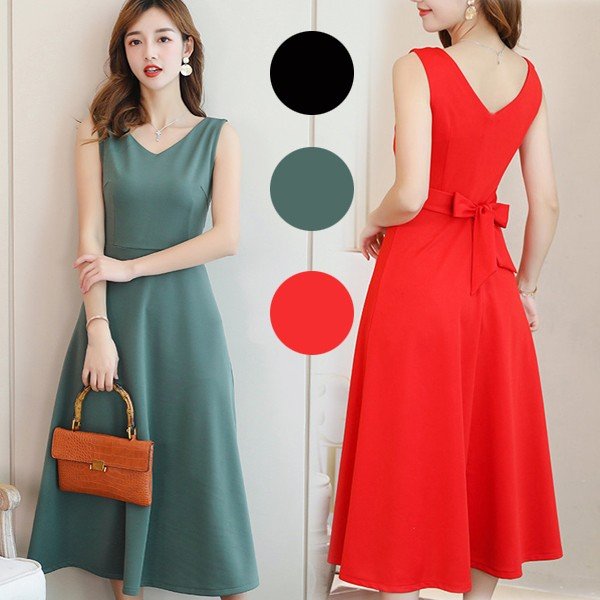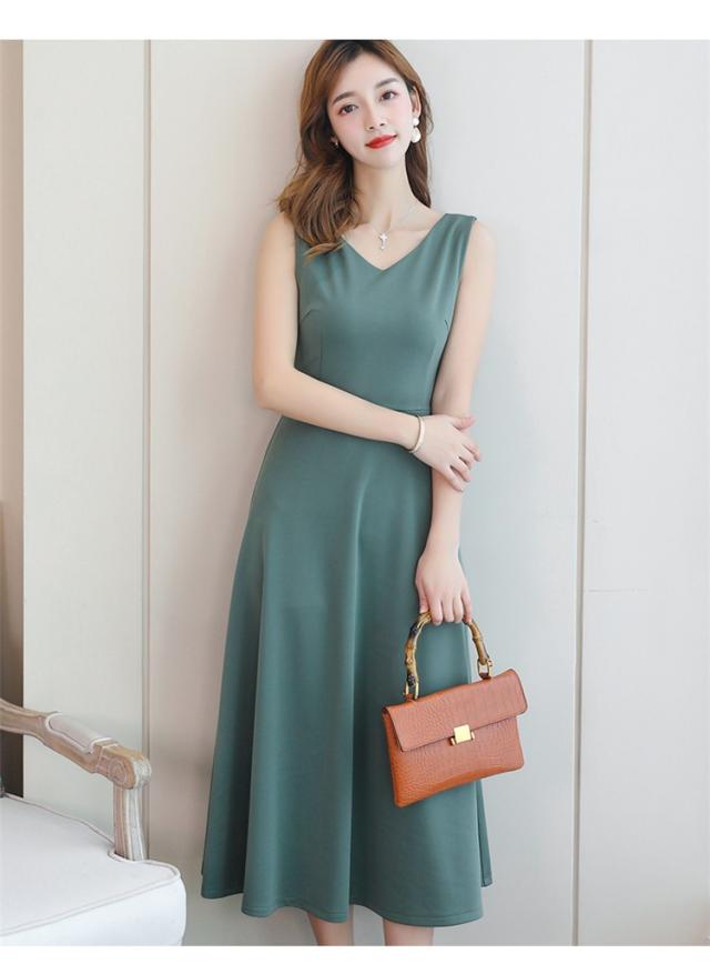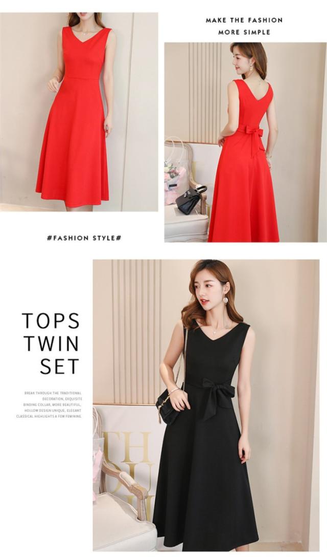 ワンピース レディース 夏 オシャレ 韓国風 無地 リボン コーデ ロング丈 Aライン 結婚式 パーティー ドレス お呼ばれ ワンピ 新作