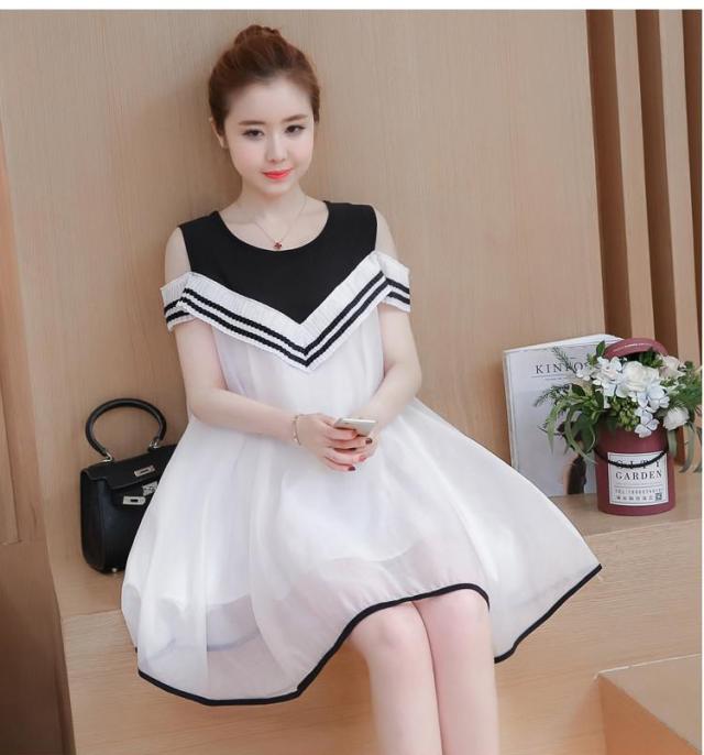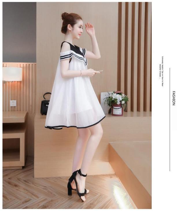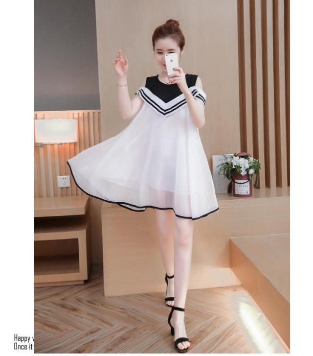 ワンピース レディース ショット オシャレ 夏 ホワイト 大人可愛い 体型カバー 切り替え 白 ワンピ 大きいサイズ 通勤 韓国風 フレア