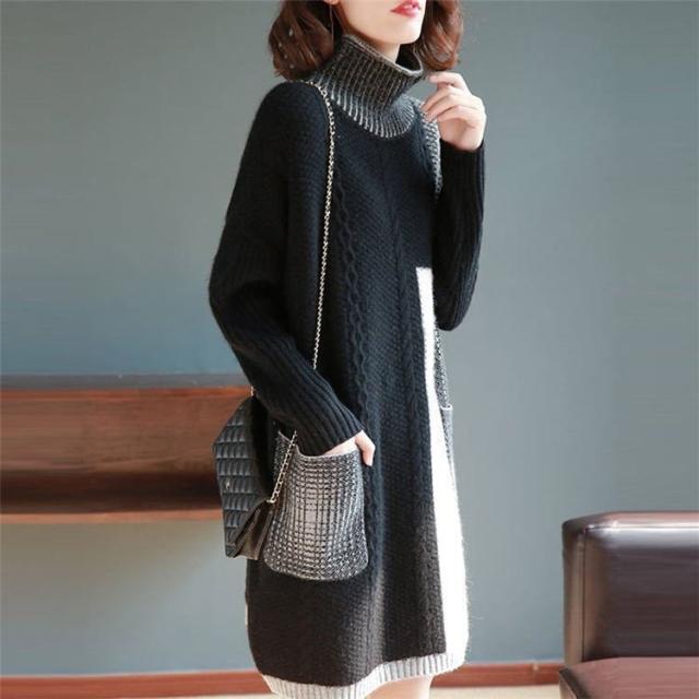 ニットワンピース レディース 上品 ニット ワンピース オシャレ ロング セーター 秋冬 40代 ハイネック 長袖ワンピ 韓国風 お出かけ 通勤 OL 体型カバー