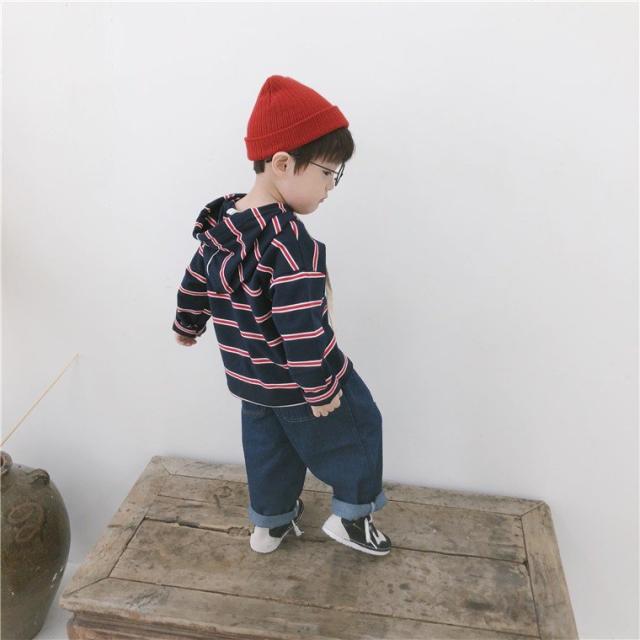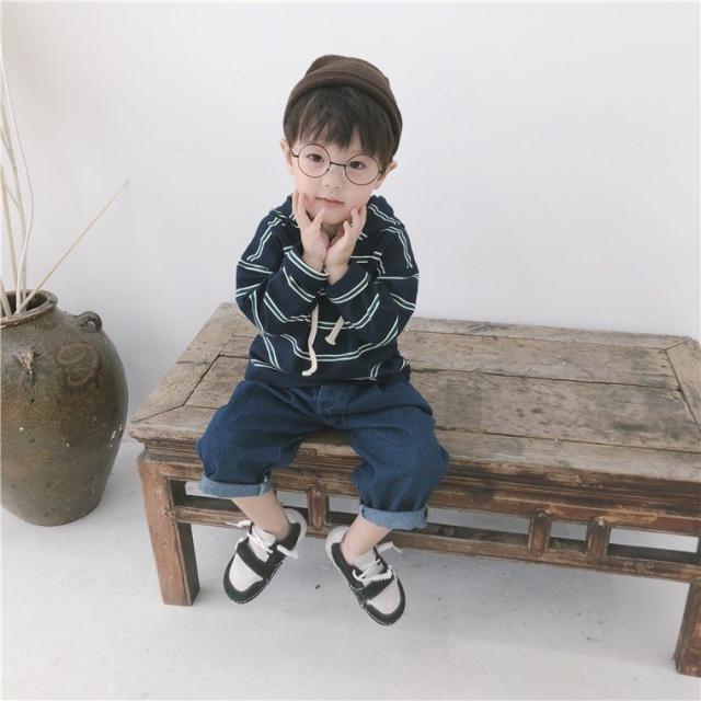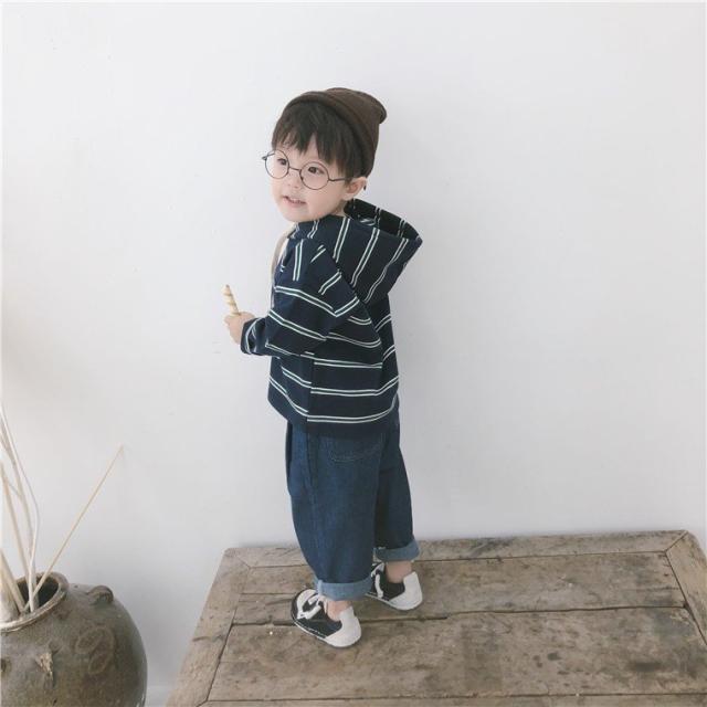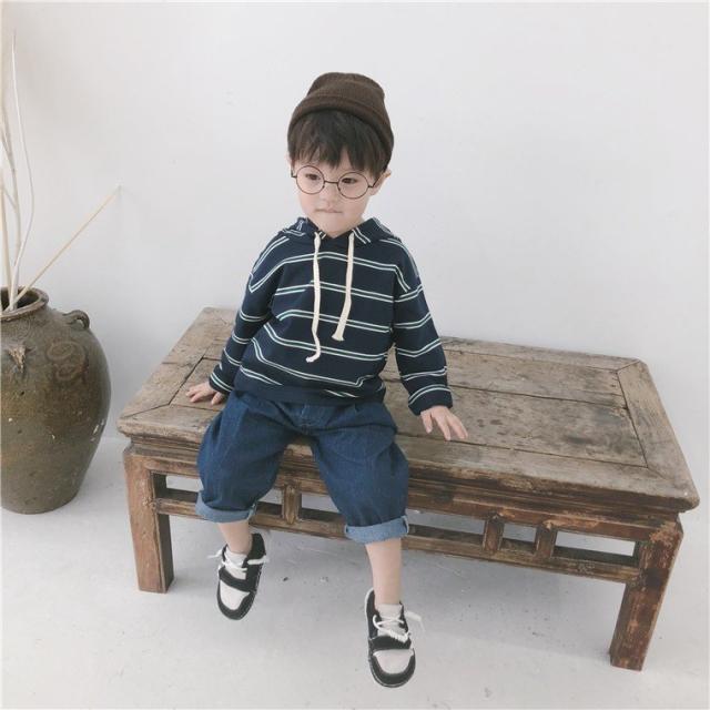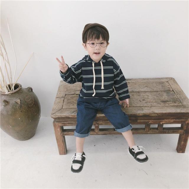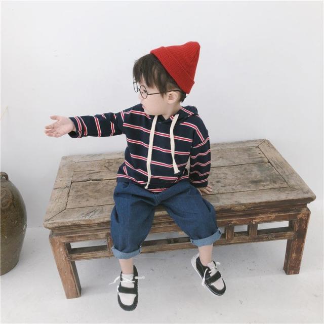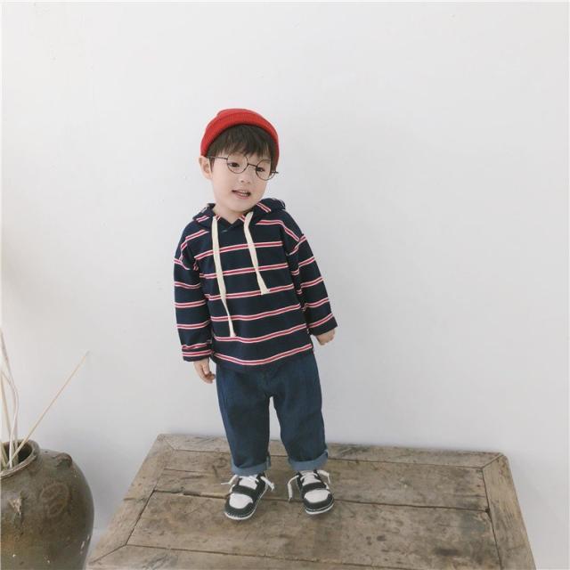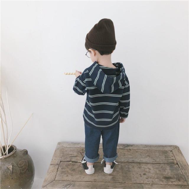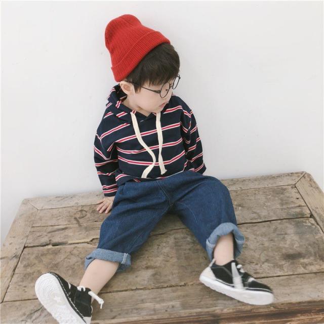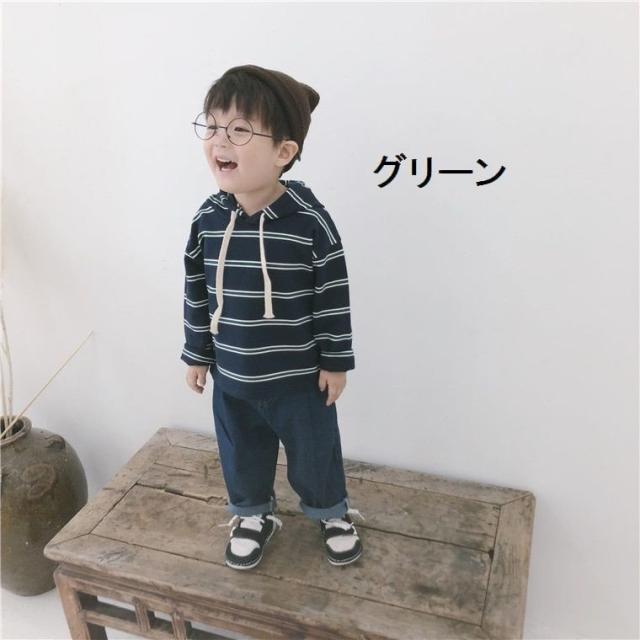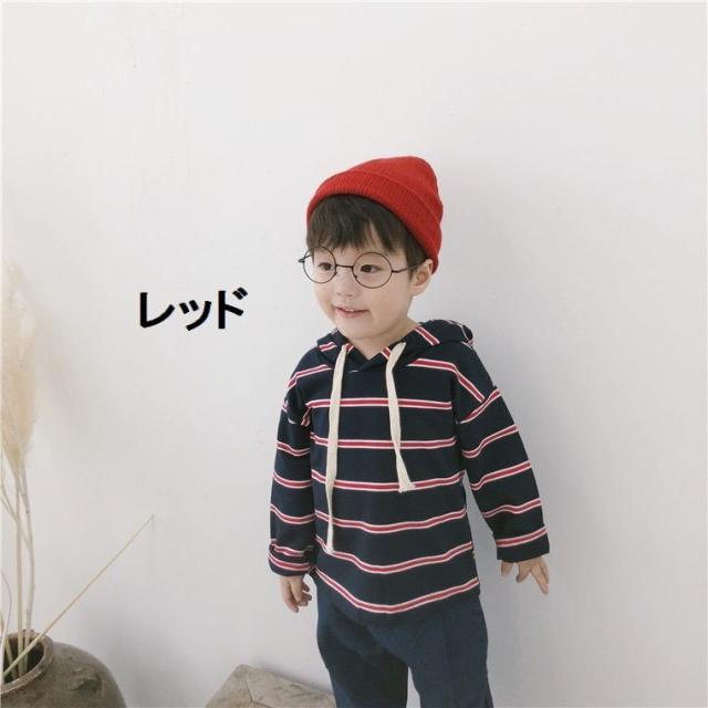 子ども用 トップス トレーナー フード付き 長袖 秋 冬 ボーダー ライン シンプル 可愛い かっこいい オシャレ お出かけ お外遊び お散歩