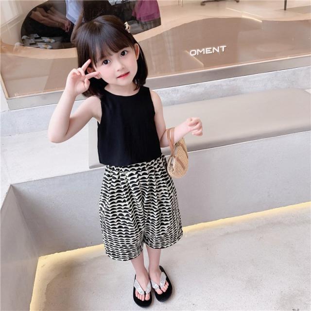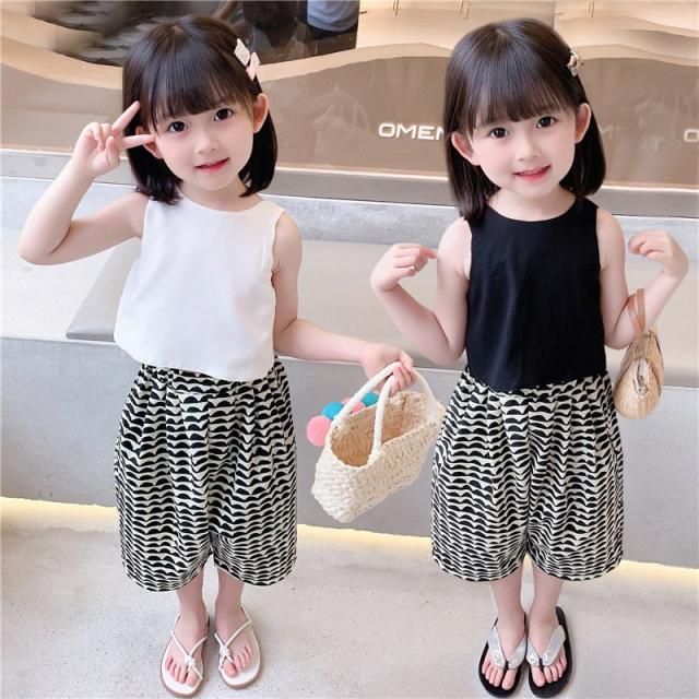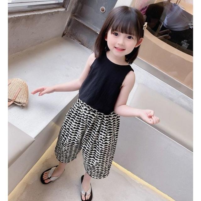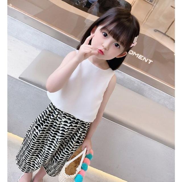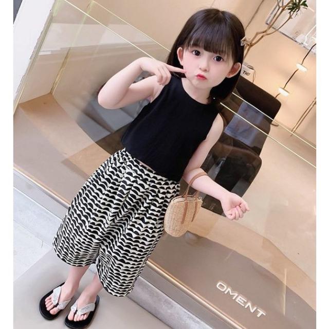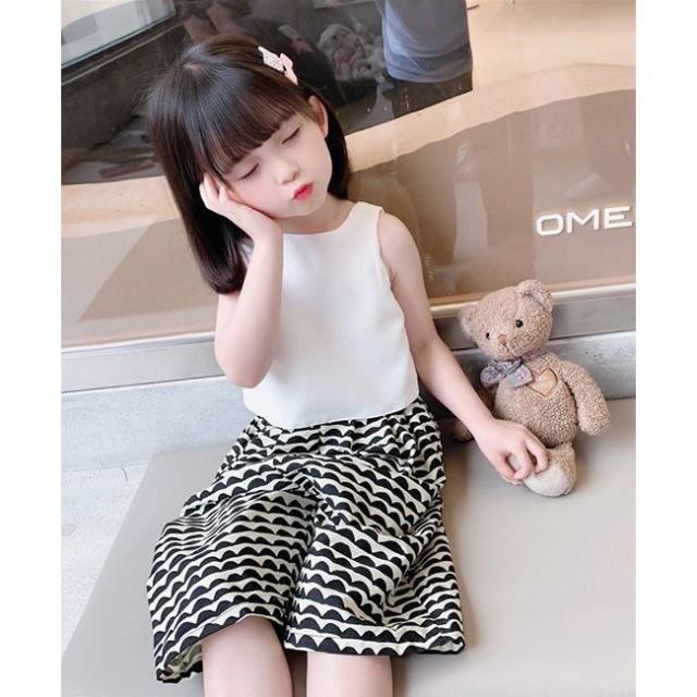 セットアップ タンクトップ ガウチョパンツ ワイドパンツ キッズ 女の子 子供服 上下セット ノースリーブ ショート 7分丈 2点セット トップス 袖