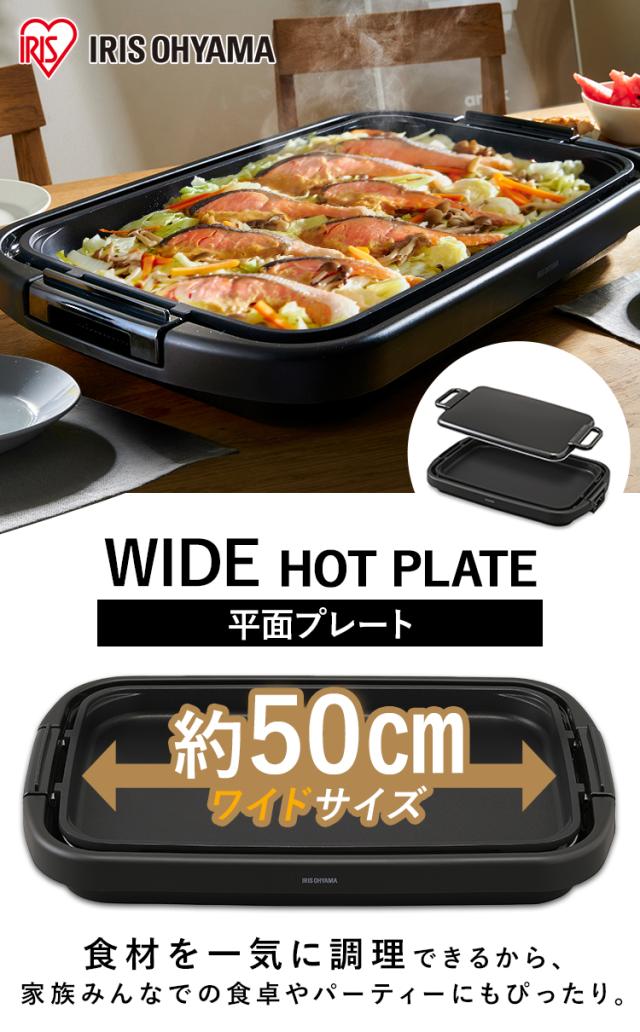 ホットプレート 大型 ワイド 幅約50cm アイリスオーヤマ 3〜4人分 一気に調理 大きい 平面プレート 餃子70個 パンケーキ6枚 大人数 ホームパーティー お手入れ簡単 フッ素加工 ふた付き キッチン家電 ワイドホットプレート 1枚 SWHP-011-B *