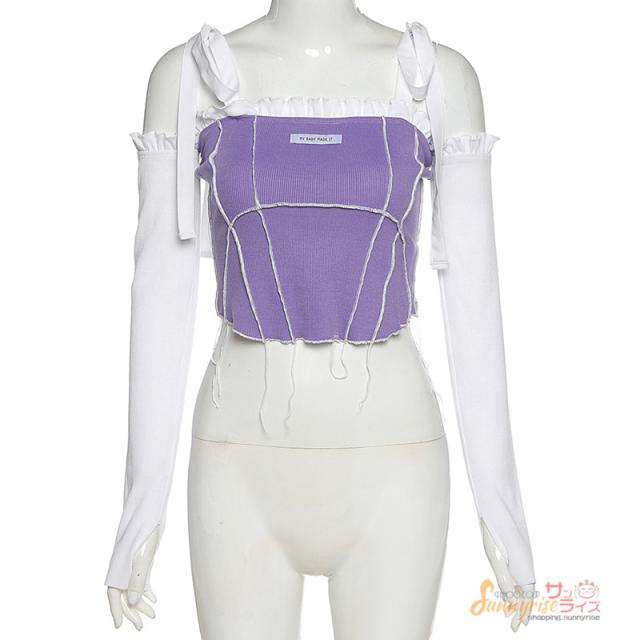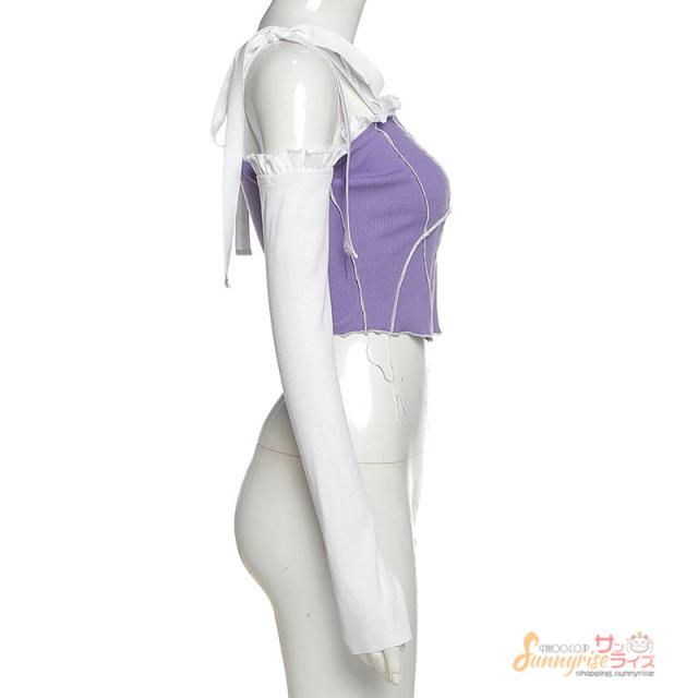 タンクトップ ダンス衣装 へそ出し トップス カットソー レディース 切り替え 長袖 ヒップホップ ステージ衣装 ストリート系 イベント個性的 服 原宿系