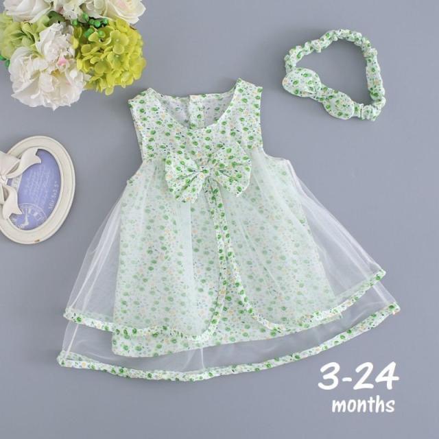 ワンピース ベビー 赤ちゃん キッズ 子供 ノースリーブ ラウンドネック チュール クローバー リボン プリンセス ふんわり
