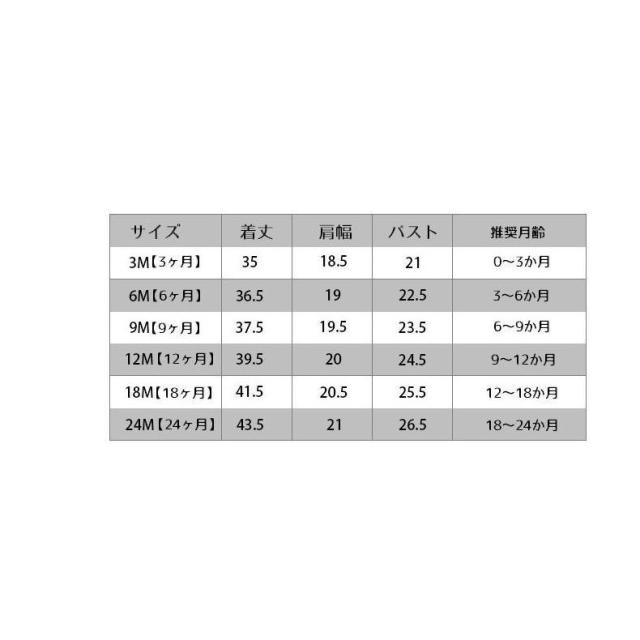 | サイズ | 3M 6M 9M 12M 18M 24M |