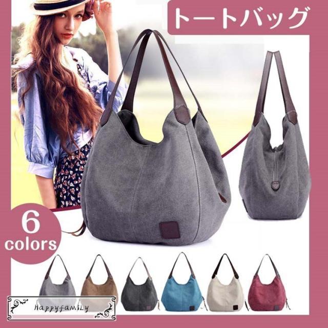トートバッグ レディース キャンバス 帆布 A4 3つ仕切り 手提げバッグ 無地 可愛い 旅行