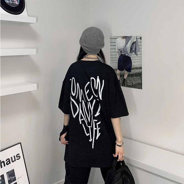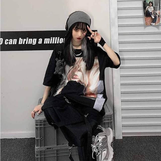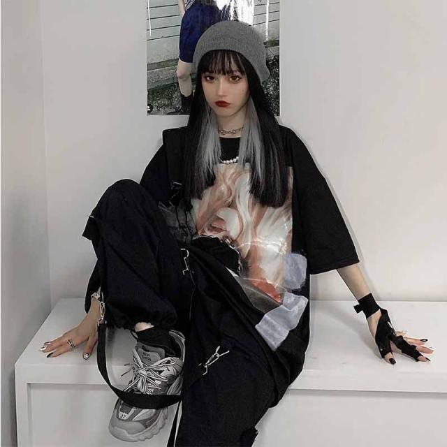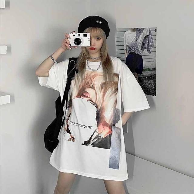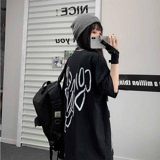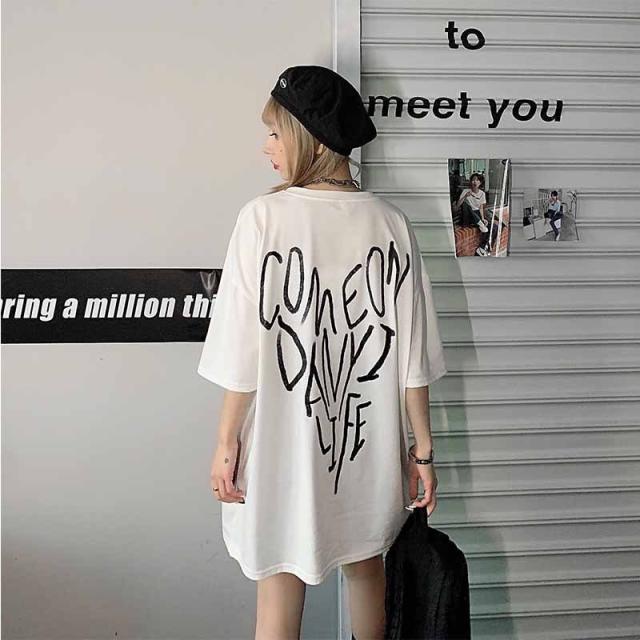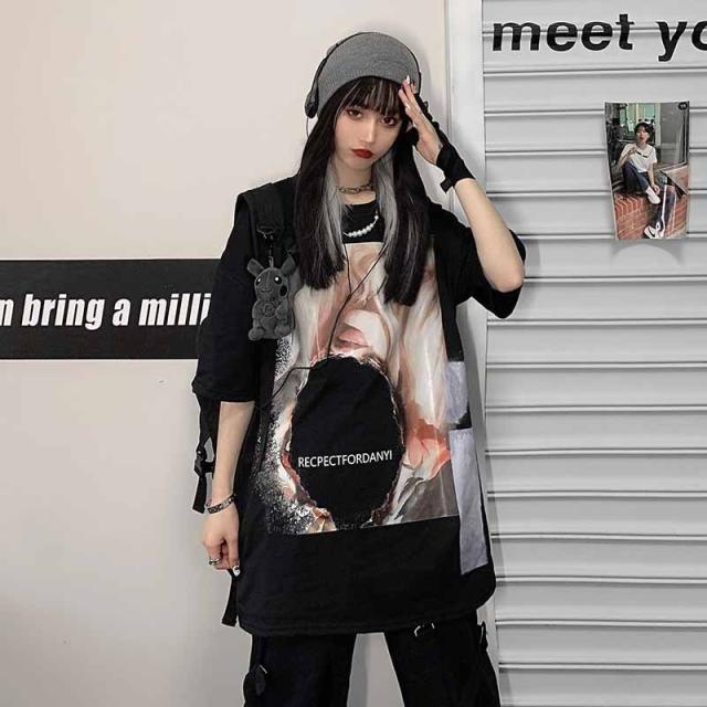 原宿風 Tシャツ レディース おしゃれ 半袖 ロング丈トップス 韓国ファッション ヒップホップ ダンス衣装 ストリート系 BF風 カジュアル 大きいサイズ 春夏秋