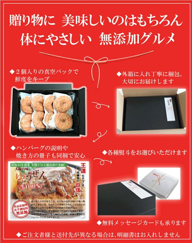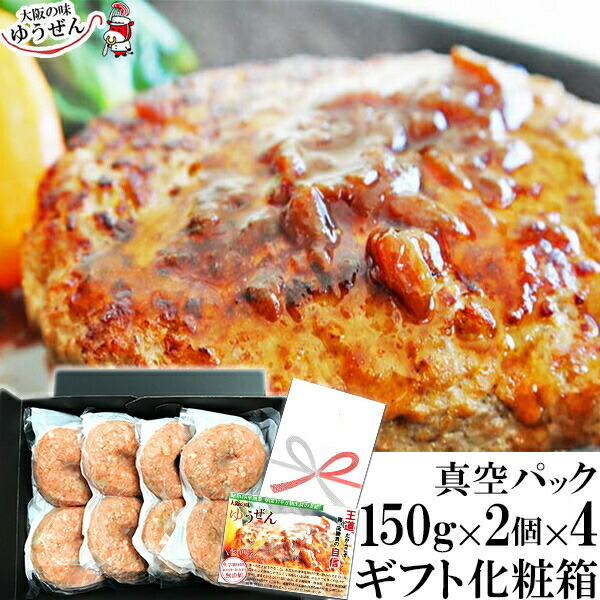 【ギフト】[送料無料] ギフト仕様 こだわり無添加 ゆうぜん ハンバーグ 150g×8個入 (2個真空×4)セット お取り寄せ グルメ テレビ 雑誌で話題 内祝い お返し 通販 食べ物 肉 惣菜 ゆうぜん ギフト agesugi_sgu