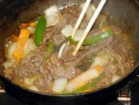良質の牛肉を、決められた厚みで均一にスライスし、特製の無添加タレとゴマをまぜあわせ、