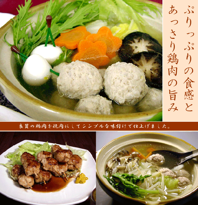 | もも肉を使用することで鶏肉本来のプリプリ感を出し、お鍋で煮込んでもパサパサしない、自然の旨みを引き出しましています。 使い方もお鍋だけではなく自由自在。どんなお料理でも合うようにお塩・醤油・ニンニクなどでシンプルな味付けをしてあります。焼いてよし、揚げてよし、煮てよし、のぷりっぷりな鶏のつみれです。 |