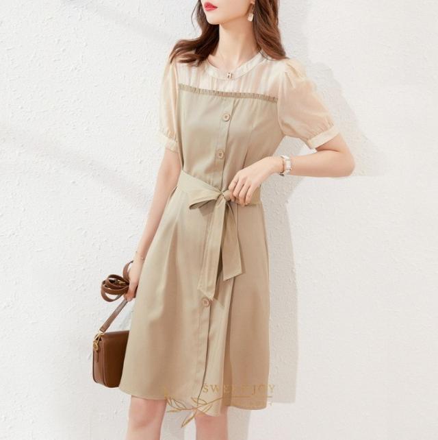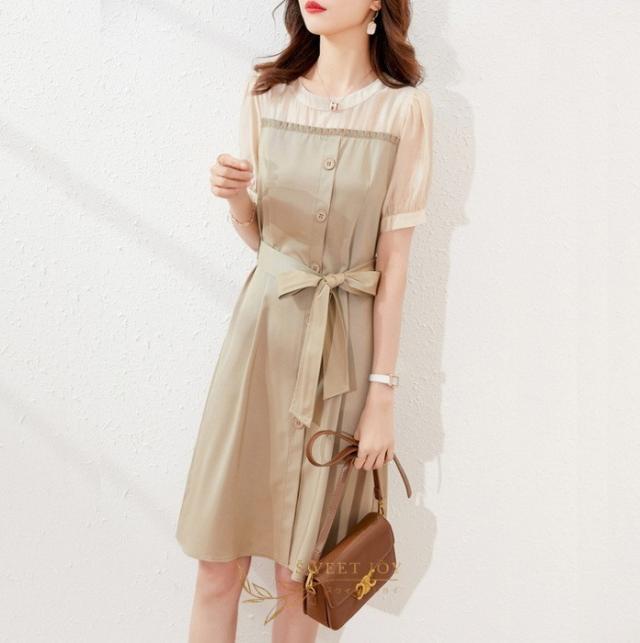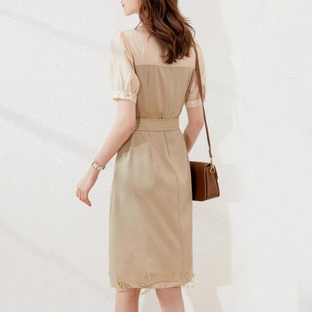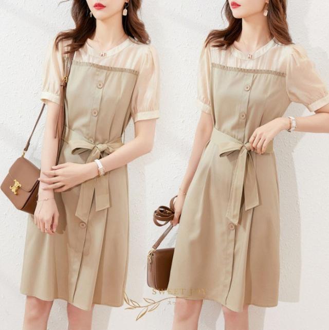 ワンピース レディース 40代 きれいめ 膝丈ワンピース 春夏 半袖ワンピース 切り替え配色ロング丈スカートaライン 韓国風 オシャレ通勤OL 大人上品 30代50代