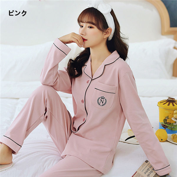 ルームウェア パジャマ レディース 上下セット 無地 長袖 トップス ロングパンツ 部屋着 ホテル 春秋冬用 可愛い パジャマ