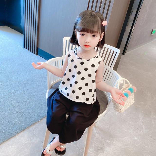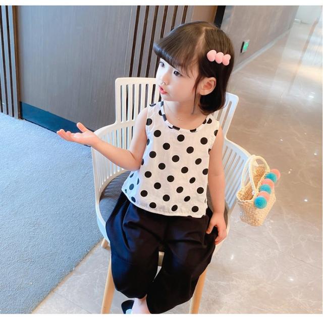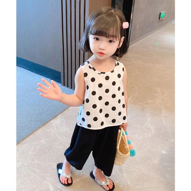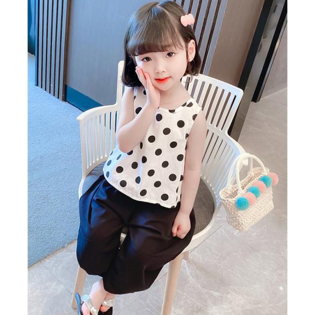 セットアップ ノースリーブ 子供服 キッズ 女の子 タンクトップ ブラウス サルエル風 ロングパンツ クロップド丈 ワイド 水玉 バックリボン おしゃ