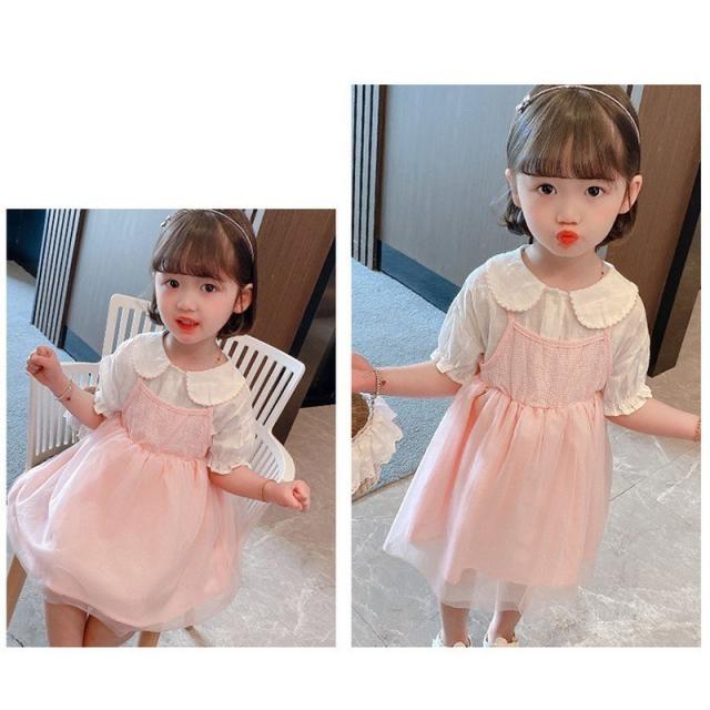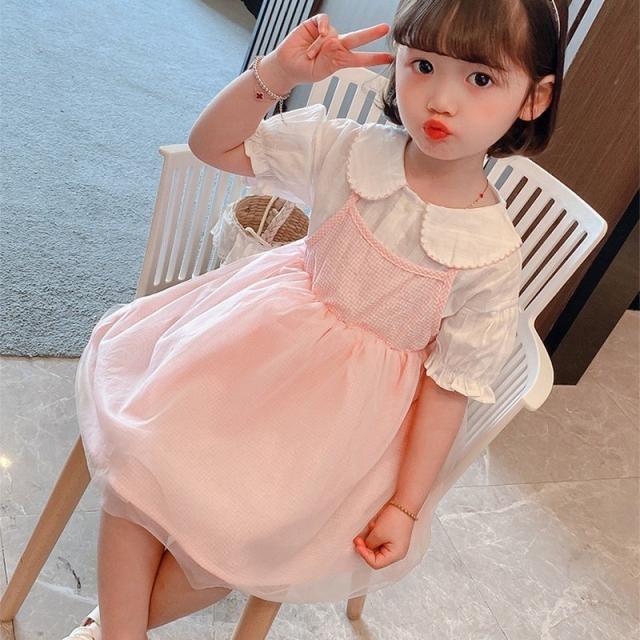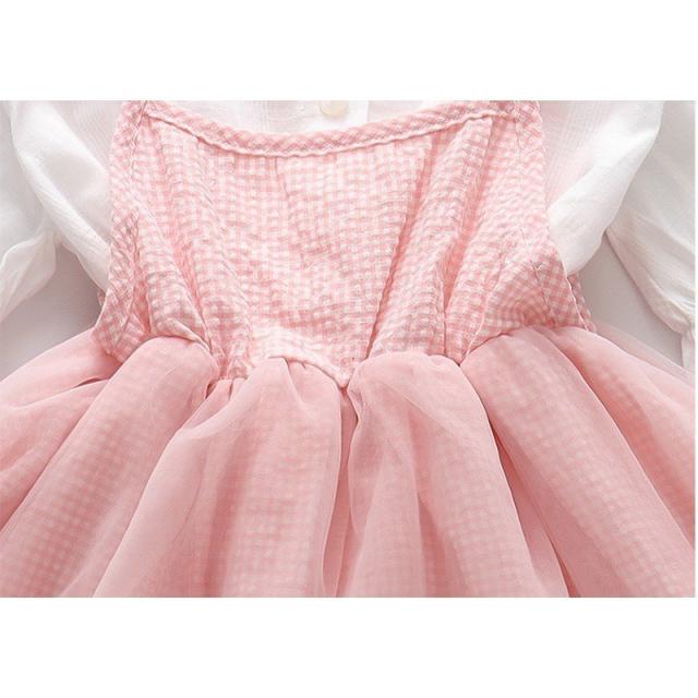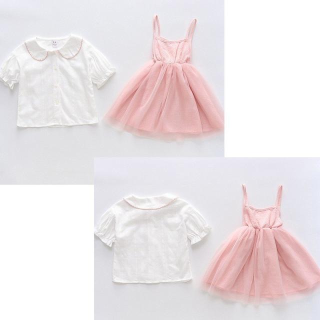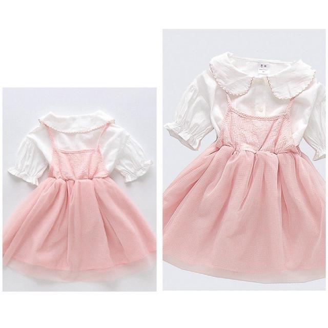 セットアップ 上下セット ブラウス ジャンパースカート 子供服 キッズ ベビー 女の子 襟付き 丸襟 パフスリーブ 半袖 袖口ゴム ギャザー ギンガム