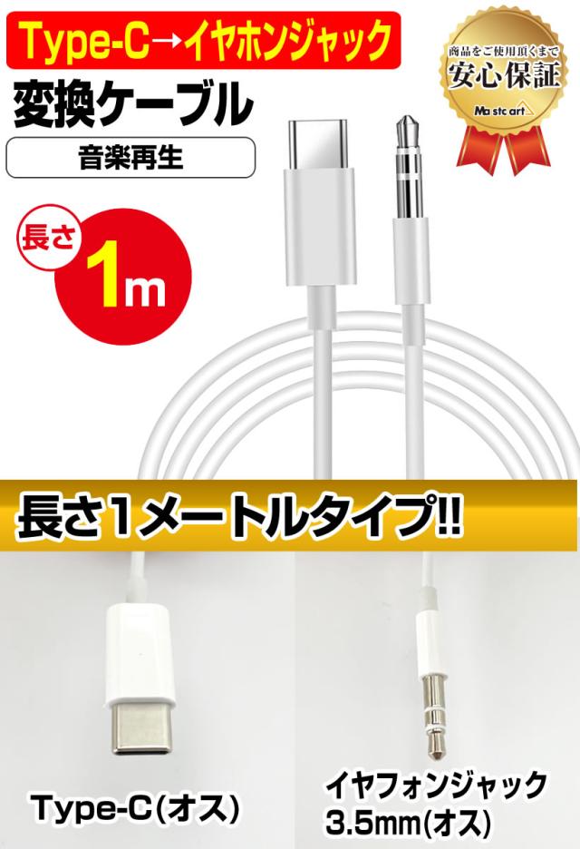 USB Type-C → 3.5mm ステレオ イヤホン ジャック 変換ケーブル 1メートル ミニプラグ 1m ケーブル オス メス Android to タイプC Type C USB-C ipad 変換 変更 切替 パソコン タブレット