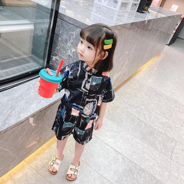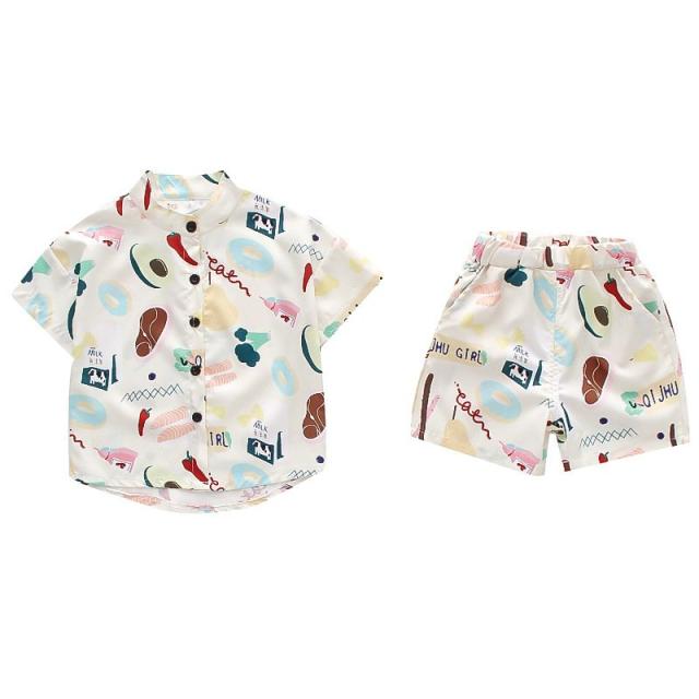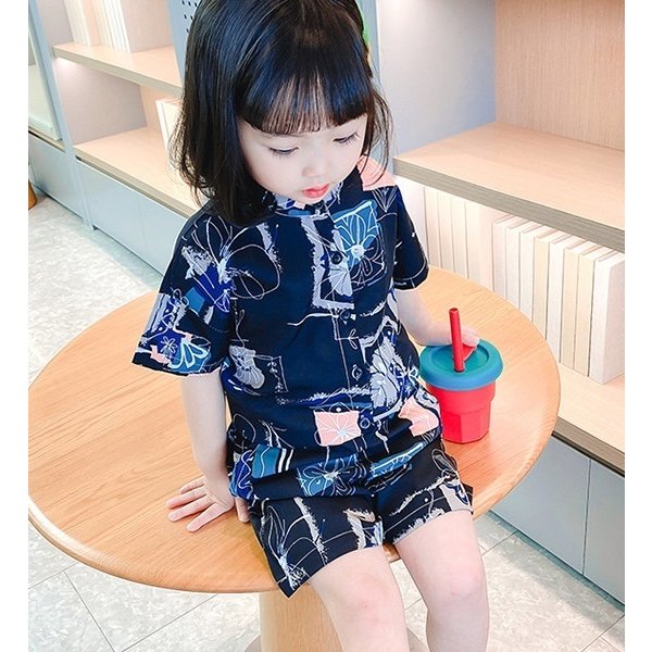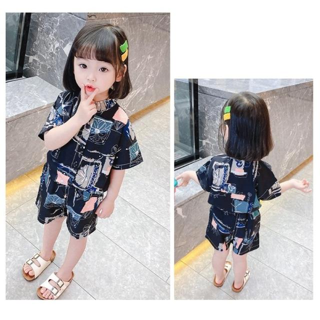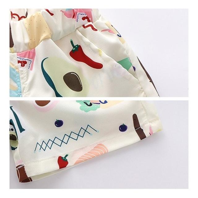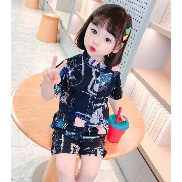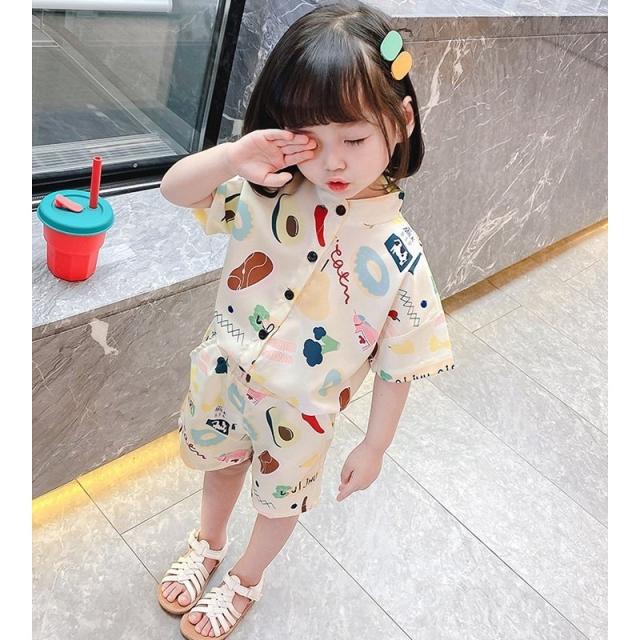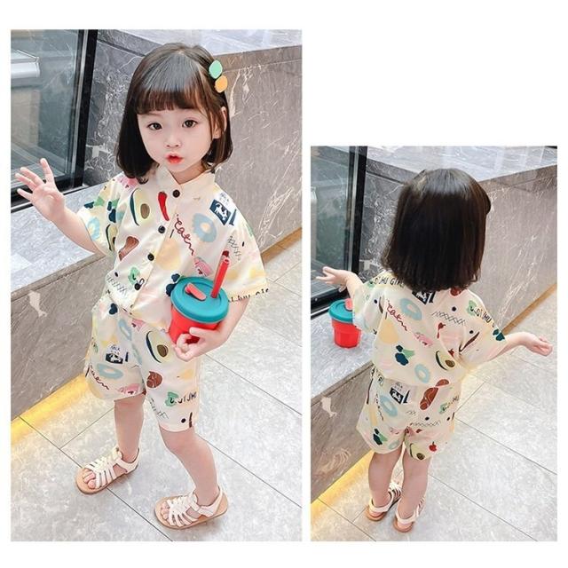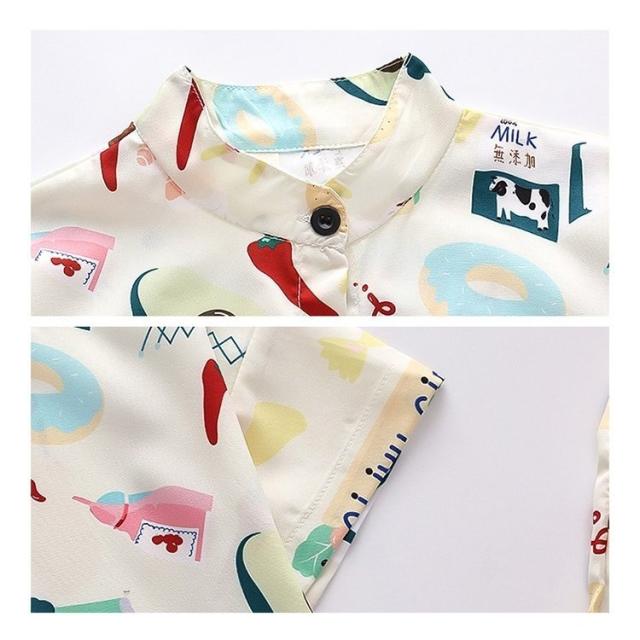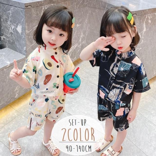 セットアップ 2点セット キッズ 子供服 女の子 男の子 男女兼用 トップス ボトムス シャツ 半袖 半ズボン スタンドカラー プリント入り アボカド