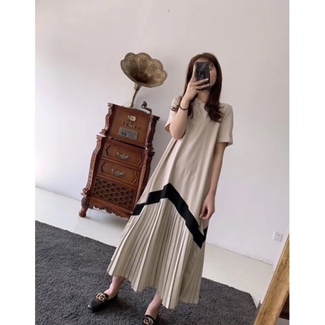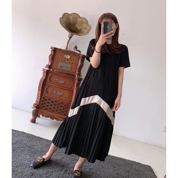 ワンピース レディース ファッション 20代 30代 40代 50代 女性 カジュアル 夏服 春 切り替え プリーツ ロングTワンピース 夏