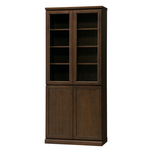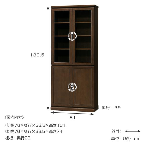 フリーボード 書棚 天然木 ガラス開き戸 FIGARO 幅81cm ( 開梱設置 本棚 リビングボード リビング収納 収納家具 日本製 完成品 収納 食器棚 ガラス扉 木製 国産 ブラウン ナチュラル おしゃれ )