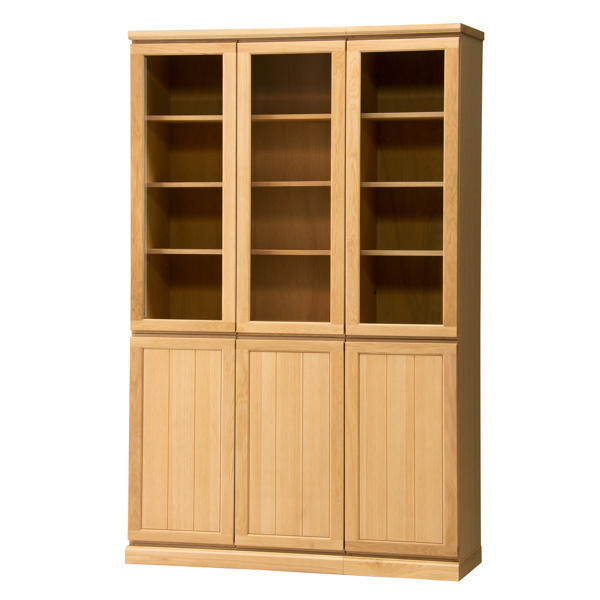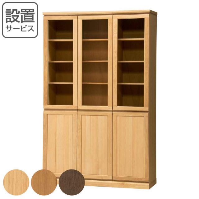 フリーボード 書棚 天然木 ガラス開き戸 FIGARO 幅121cm ( 開梱設置 本棚 リビングボード リビング収納 収納家具 日本製 完成品 収納 食器棚 ガラス扉 木製 国産 ブラウン ナチュラル おしゃれ )