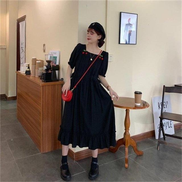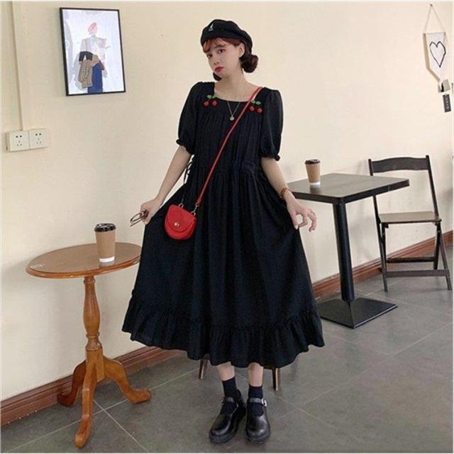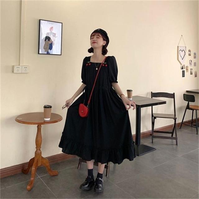 スクエアネック ワンピース さくらんぼ柄 夏ワンピ 大人可愛い リゾートワンピ 半袖 マキシ丈 5L 大きいサイズ 大人かわいい 着心地 ロングワンピース