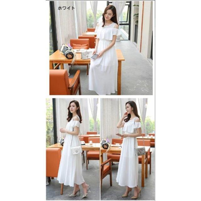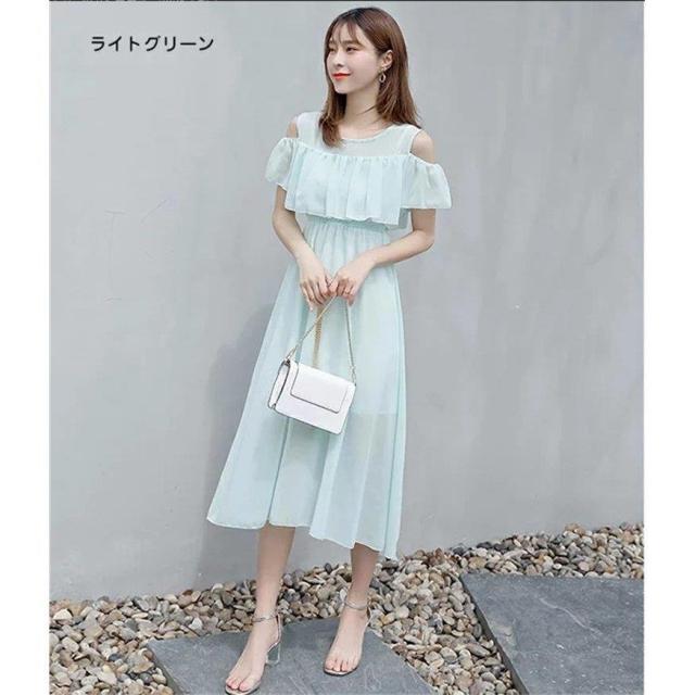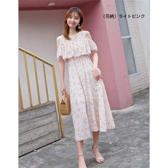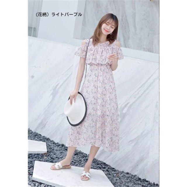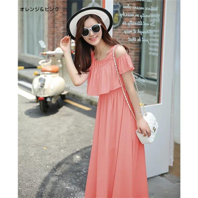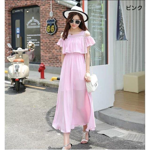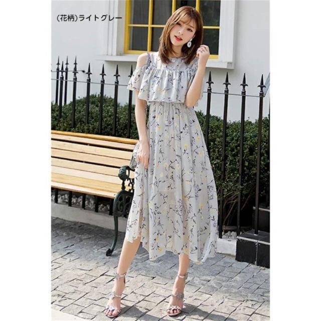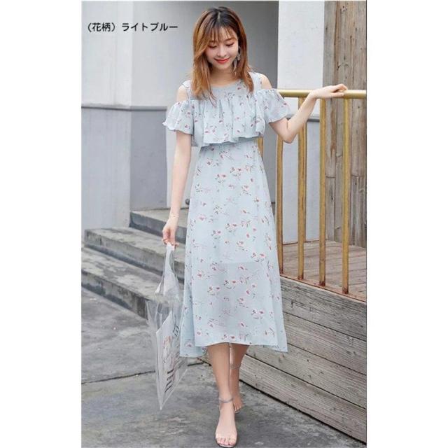 マキシワンピース オフショルダー 肩出しワンピース ボヘミアン シフォンワンピース ロング丈 フレアワンピース 花柄 純色 フリル袖 透け感 サンドレス