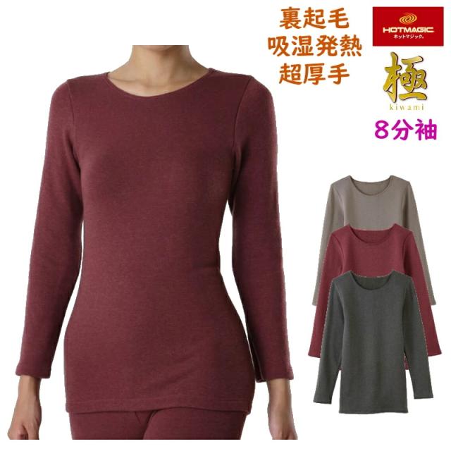グンゼ【ホットマジック】極 婦人8分袖シャツ 裏起毛 超厚手 伸びる 暖かい 吸湿発熱 あったか ストレッチ MH5946
