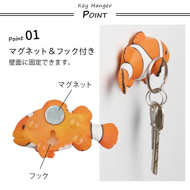 キーフック 壁掛け マグネット 鍵 フック 鍵掛け ハンガー 収納 キー おしゃれ かわいい 玄関 玄関収納 壁 磁石 海 生き物 雑貨 クマノミ ナンヨウハギ チンアナゴ うなぎ たこ タコ 動物 アニマル グッズ モチーフ インテリア雑貨 ユニーク キーハンガー