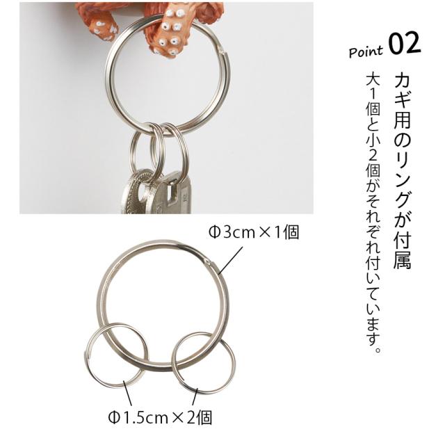 カギ用のリング(Φ3cm×1個、Φ1.5cm×2個)が付属。