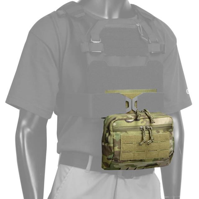予備のマガジンや無線機、応急用品、ゴーグル、貴重品など、様々な小物の携行に最適な2ポケット仕様の中型拡張ポーチ。SPITFIREおよびSPITFIRE MK II、HELLCAT等のフロントフラップに挟み込んで装着します。もちろん他社製プレートキャリアでの使用もOK。