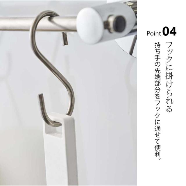 持ち手先端部分をフックに掛けられます。
